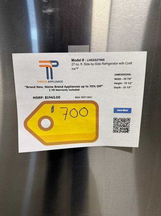 BRAND NEW LG SIDE BY SIDE SMART REFRIGERATOR MODEL: LHSXS2706S REF13988