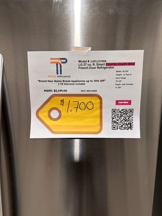 BRAND NEW! Smart Counter-Depth MAX French Door Refrigerator LG MODEL: LRFLC2706S REF14083