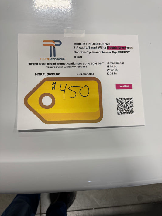 GE Profile™ ENERGY STAR® 7.4 cu. ft. Capacity aluminized alloy drum Electric Dryer with Sanitize Cycle and Sensor Dry MODEL: PTD60EBSRWS SKU: DRY13212