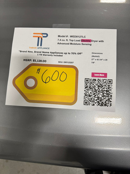 7.4 cu. ft. Top Load Electric Dryer with Advanced Moisture Sensing MODEL: WED8127LC SKU: DRY13207
