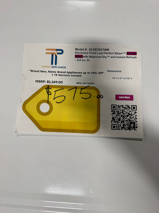 Electrolux 8-cu ft Stackable Vented Electric Dryer with Steam Cycle (White) MODEL: ELFE7637AW SKU: DRY10287R