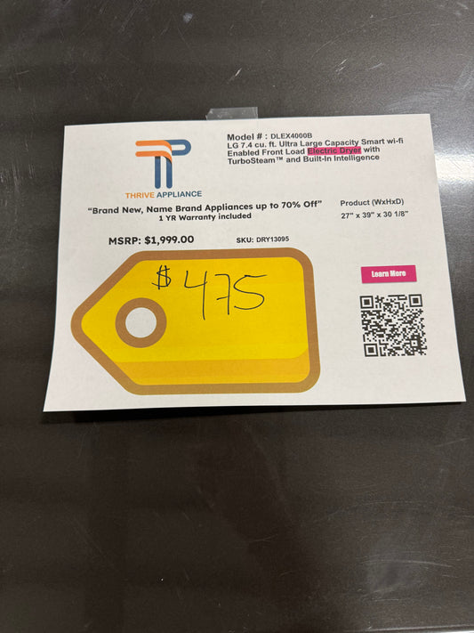 NEW IN BOX LG 7.3 cu. ft. Smart Rear Control Electric ENERGY STAR Dryer with Sensor Dry & Steam Technology