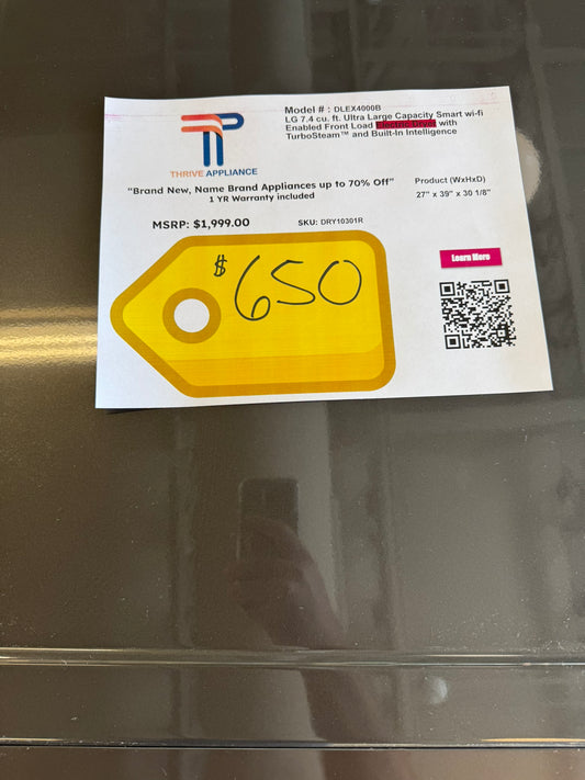 LG 7.4 Cu. Ft. Front Load Electric Dryer with TurboSteam MODEL: DLEX4000B DRY10301R