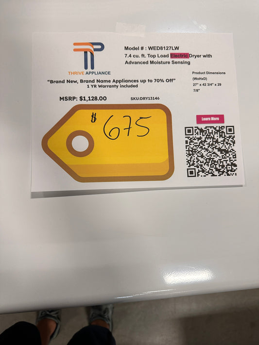 Whirlpool Top Load Electric Dryer with Advanced Moisture Sensing MODEL: WED8127LW DRY13146