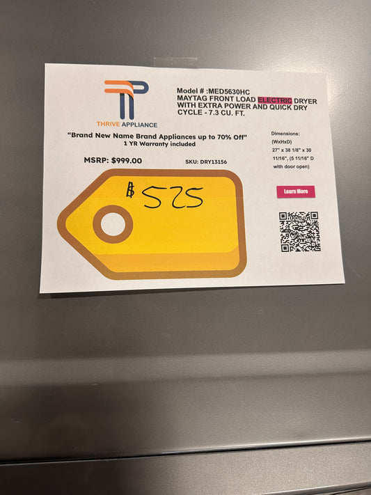 NEW! Maytag Top Load Electric Wrinkle Prevent Dryer MODEL: MED4500MW DRY13155
