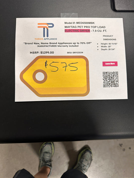 Maytag Pet Pro Top Load Electric Dryer MODEL: MED6500MBK DRY13154