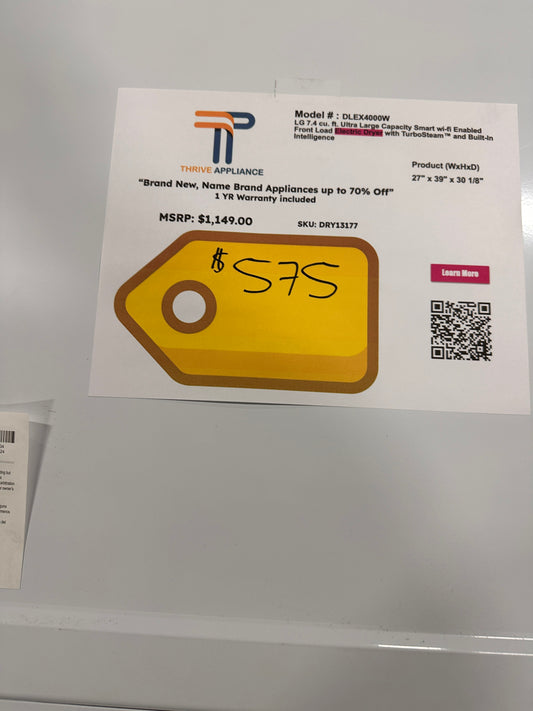 GREAT NEW LG FRONT LOAD ELECTRIC DRYER MODEL: DLEX4000B DRY13168