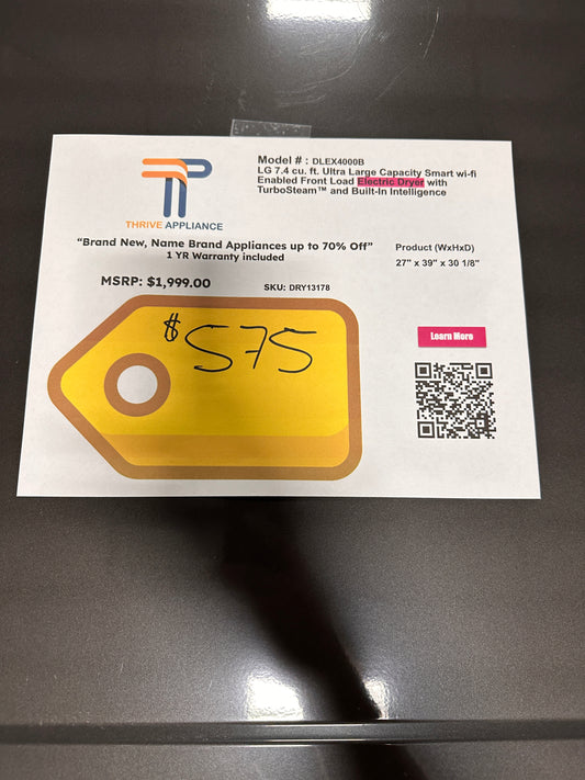 LG 7.4 Cu. Ft. Large Capacity Front Load Electric Dryer MODEL: DLEX4000W DRY13177