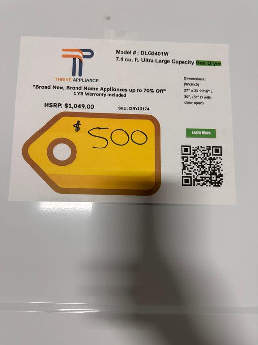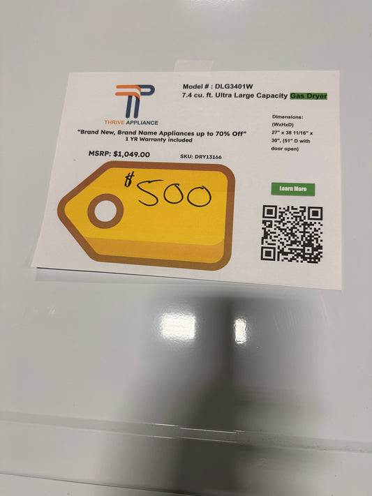 NEW 7.4 Cu. Ft. Ultra Large Capacity Gas Dryer LG MODEL: DLG3401W DRY13166