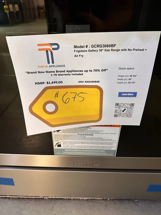 Frigidaire Gallery 30" Gas Range with No Preheat + Air Fry MODEL: GCRG3060BF SKU: RAG10084R