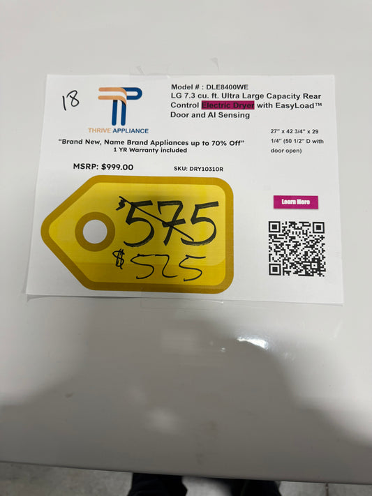 LG 7.3 cu. ft. Ultra Large Capacity Rear Control Electric Dryer with EasyLoad Door and AI Sensing MODEL: DLE8400WE SKU: DRY10310R