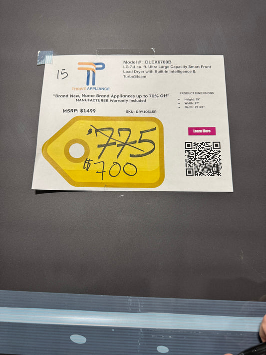 LG 7.4 cu. ft. Ultra Large Capacity Smart Front Load Dryer with Built-In Intelligence & TurboSteam MODEL: DLEX6700B SKU: DRY10315R