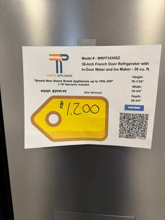 Whirlpool 36-Inch French Door Refrigerator with In-Door Water and Ice Maker - 30 cu. ft