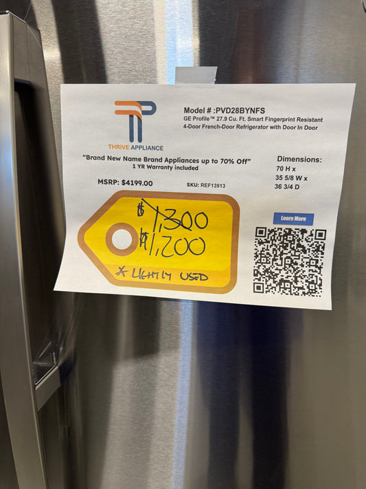 GE Profile 27.9 Cu. Ft. Smart 4-Door French Door Refrigerator with Door In Door MODEL: PVD28BYNFS REF10425R