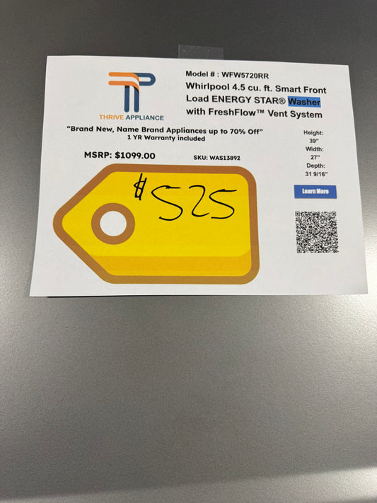 Whirlpool 4.5 cu. ft. Smart Front Load ENERGY STAR Washer with FreshFlow Vent System MODEL: WFW5720R SKU: WAS13892
