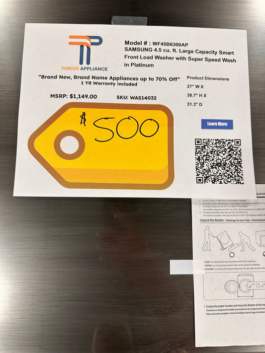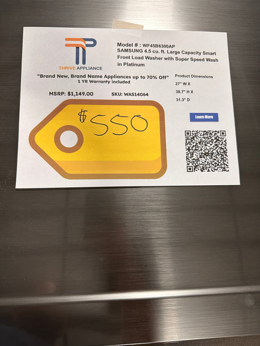 GREAT NEW SAMSUNG SMART FRONT LOAD WASHER MODEL: WF45B6300AP WAS14064