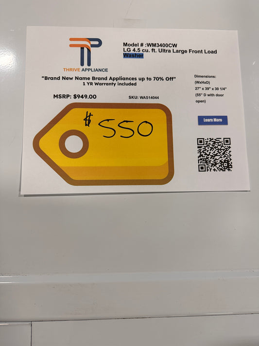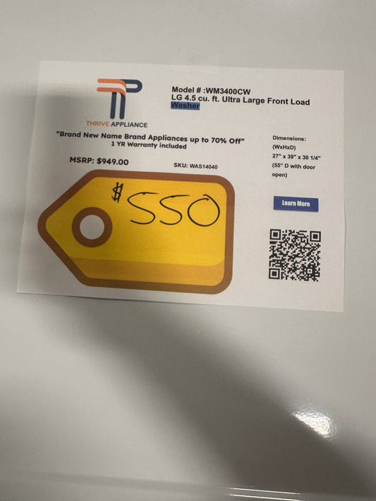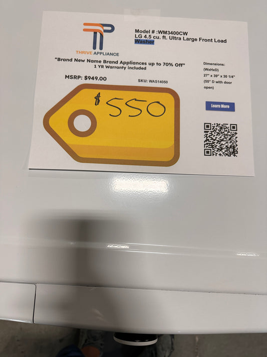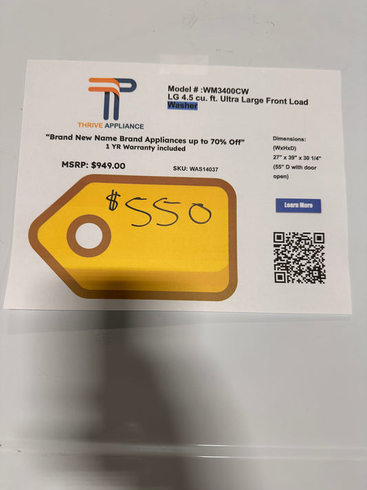 GORGEOUS NEW LG 4.5 Cu Ft Front Load Washer MODEL: WM3400CW WAS14047