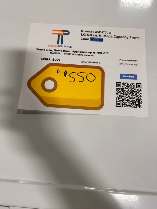 NEW! 5.0 Cu. Ft. Mega Capacity Front Load Washer LG MODEL: WM3470CW WAS14045