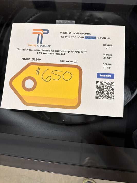 NEW Maytag Pet Pro Top Load Washer 4.7 Cu. Ft MODEL: MVW6500MBK WAS14071