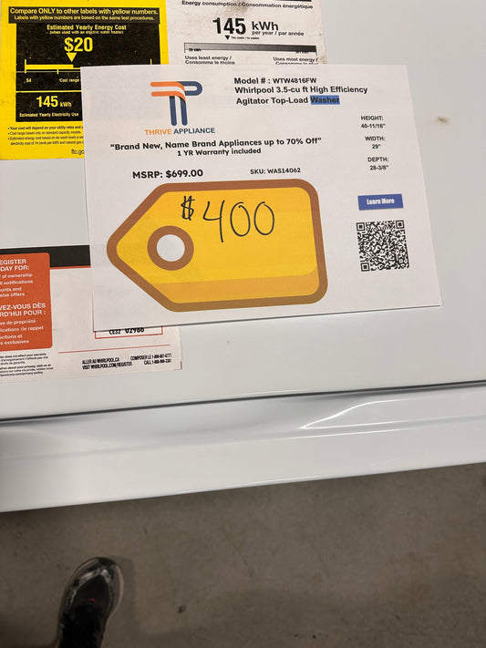 NEW! Whirlpool 3.5-cu ft High Efficiency Top-Load Washer MODEL: WTW4816FW WAS14062