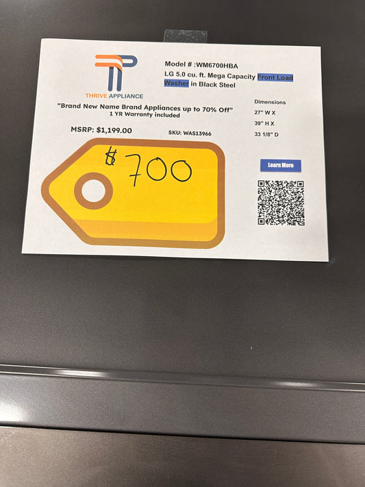 LG 5.0 Cu. Ft. Mega Capacity Smart Front Load Washer MODEL: WM6700HBA WAS13966