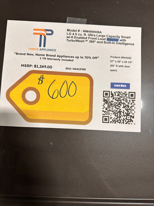 BEAUTIFUL AND BRAND NEW! LG 4.5 Cu. Ft. Front Load Washer MODEL: WM4000HBA WAS13928