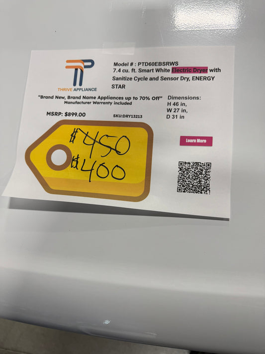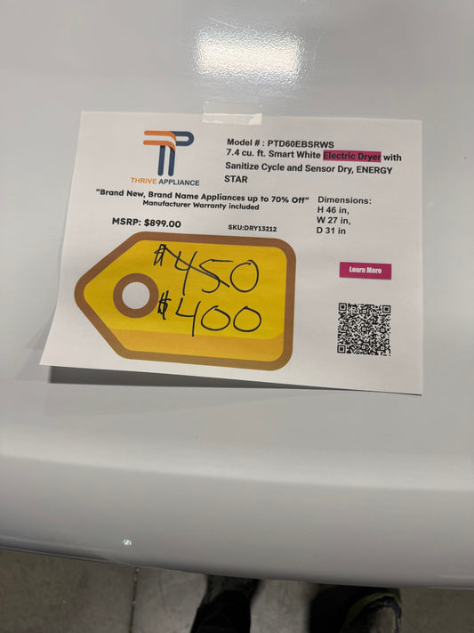 GE Profile™ ENERGY STAR® 7.4 cu. ft. Capacity aluminized alloy drum Electric Dryer with Sanitize Cycle and Sensor Dry MODEL: PTD60EBSRWS SKU: DRY13212