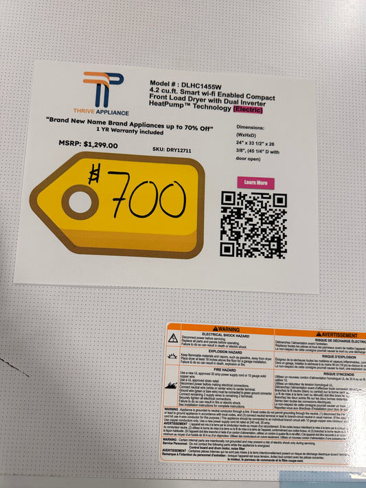 GREAT STACKABLE SMART ELECTRIC DRYER MODEL: DLHC1455W DRY12711