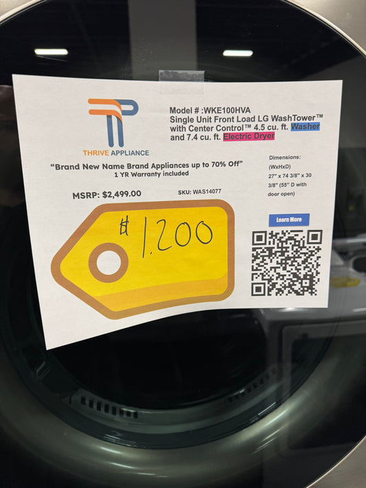 Laundry Set: LG - 4.5 Cu. Ft. HE Smart Front Load Washer and 7.4 Cu. Ft. Electric Dryer WashTower with Steam and Built-In Intelligence - Graphite Steel MODEL: WKE100HVA SKU: WAS14077