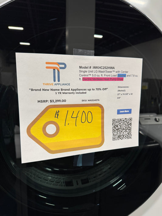 Laundry Set: LG Single Unit LG WashTower™ with Center Control™ 5.0 cu. ft. Front Load Washer and 7.8 cu. ft. Electric Ventless Heat Pump Dryer MODEL: WKHC252HWA SKU: WAS14075
