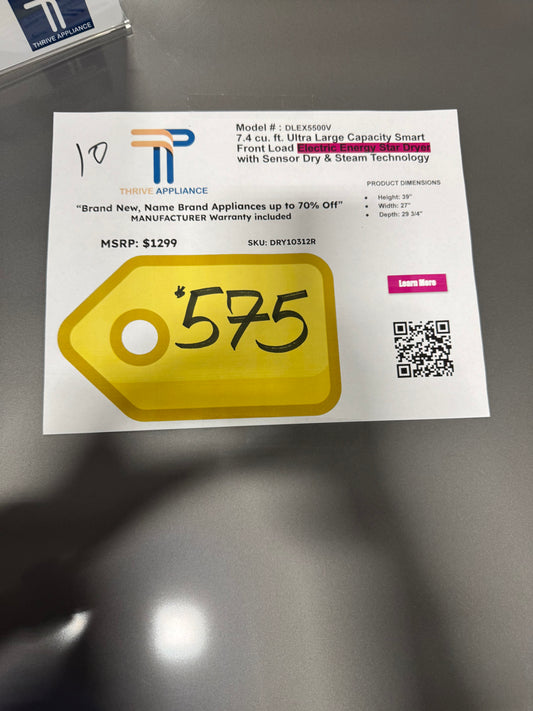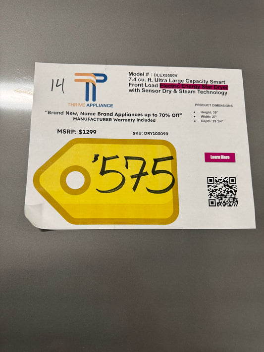 LG 7.4 cu. ft. Ultra Large Capacity Smart Front Load Electric ENERGY STAR Dryer with Sensor Dry & Steam Technology MODEL: DLEX5500V SKU: DRY10309R