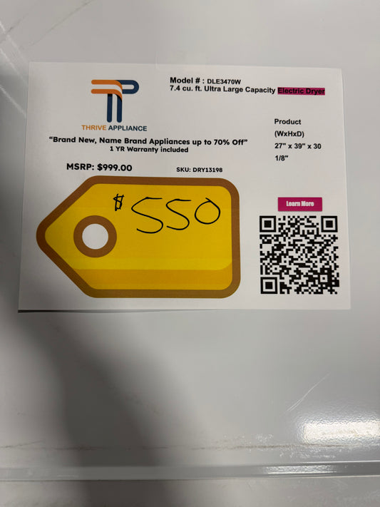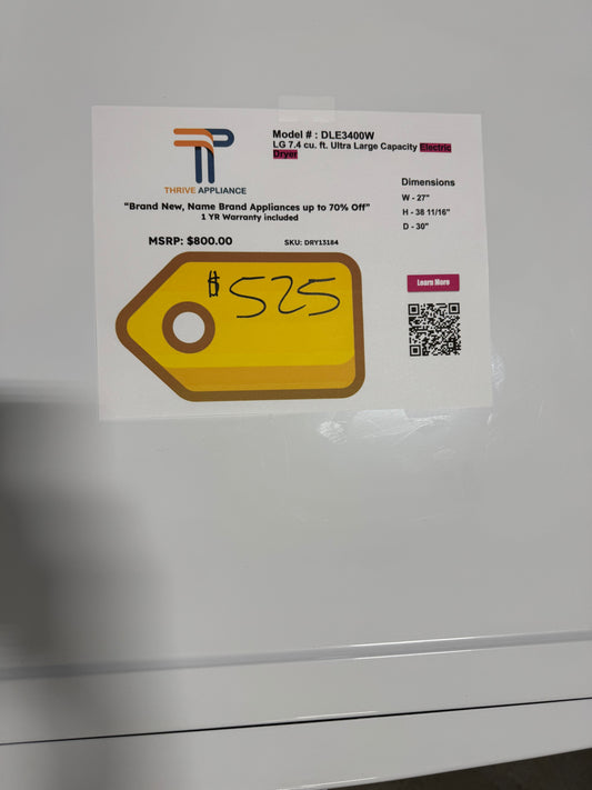 LG 7.4 cu. ft. Ultra Large Capacity Electric Dryer MODEL: DLE3470W SKU: DRY13198