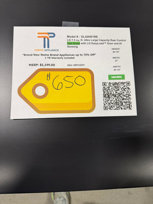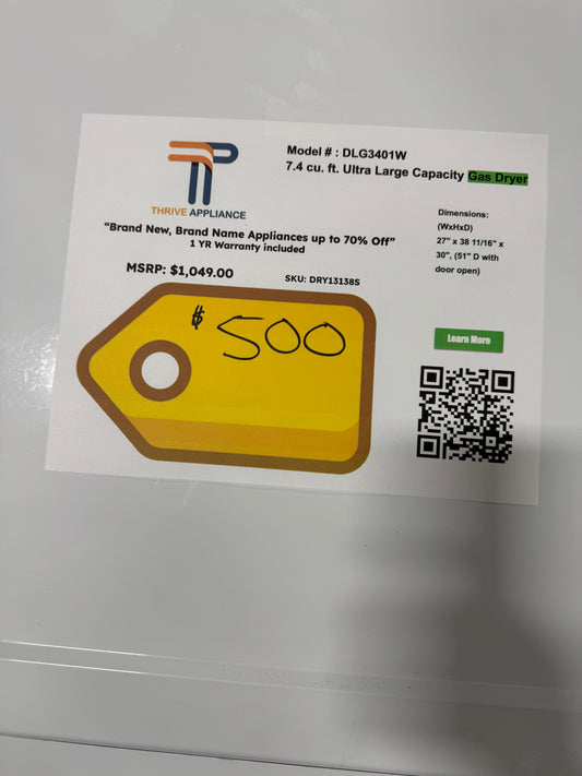 LG 7.4 Cu. Ft. Ultra Large Capacity Gas Dryer MODEL: DLG6101M DRY13136S