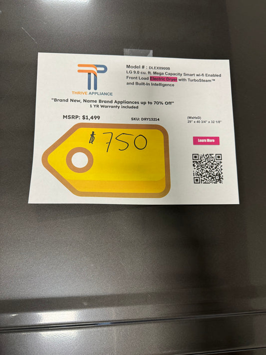 LG 9.0 cu. ft. Mega Capacity Smart Wi-Fi Enabled Front Load Electric Dryer with TurboSteam™ and Built-In Intelligence MODEL: DLEX8900B SKU: DRY13214