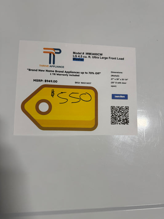 LG 4.5 Cu. Ft. Stackable Front Load Washer in White with Coldwash Technology