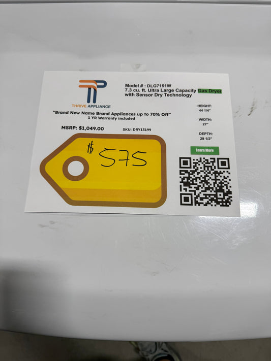 LG 7.3 Cu. Ft. Vented Gas Dryer in White with Sensor Dry Technology MODEL: DLG7151W SKU: DRY13199