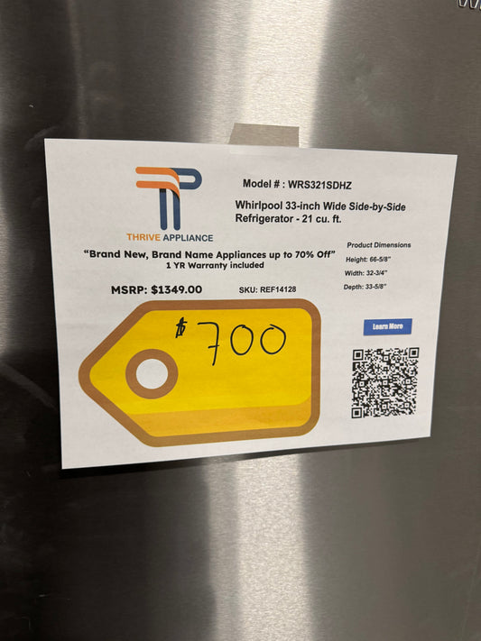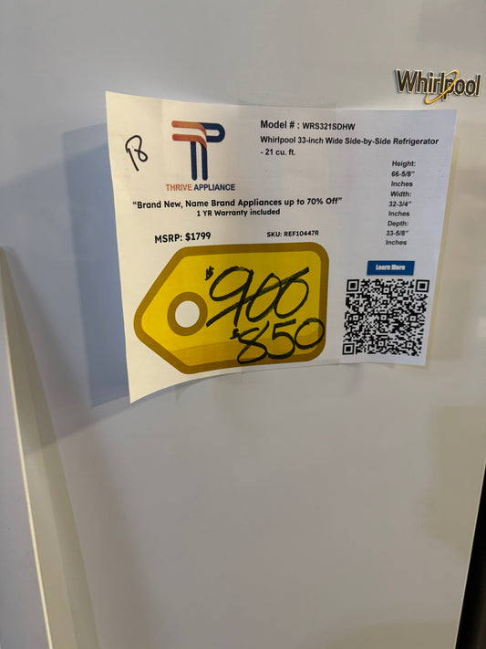 NEW! Whirlpool 33-inch W 21 cu. ft. Side by Side Refrigerator MODEL: WRS321SDHW REF10447R