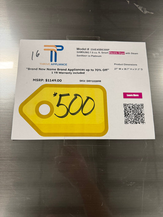 Samsung 7.5 cu. ft Smart Electric Dryer MODEL: DVE45B6300P DRY13005