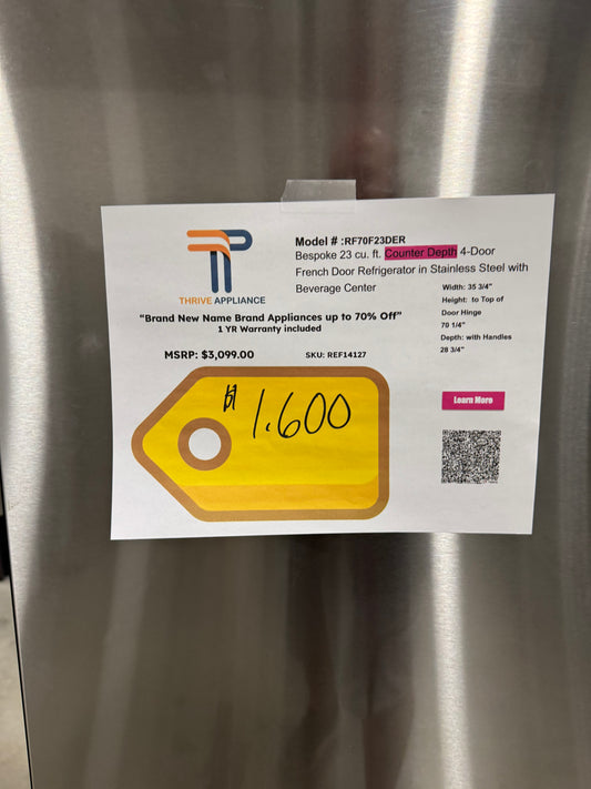 Samsung Bespoke 23 cu. ft. Counter Depth 4-Door French Door Refrigerator in Stainless Steel with Beverage Center