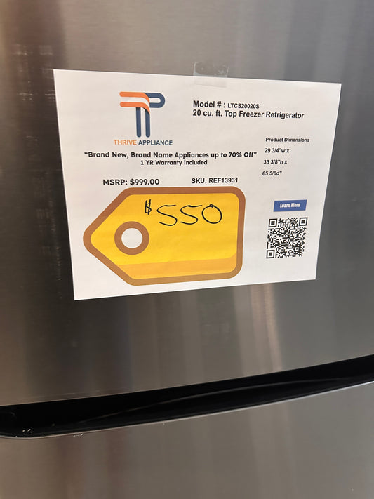 NEW! LG 20 Cu. Ft. Top Freezer Refrigerator MODEL: LTCS20020S REF13931