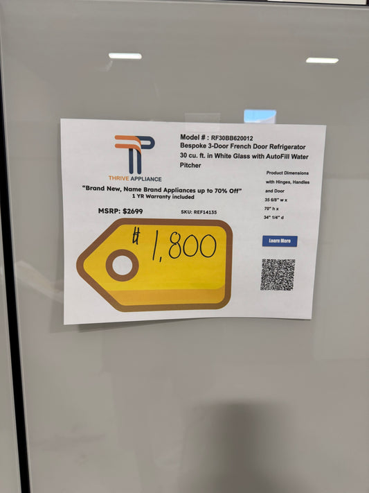 Samsung Bespoke 30 cu. ft. Standard Depth 3-Door French Door Smart Refrigerator in White Glass with Autofill Water Pitcher