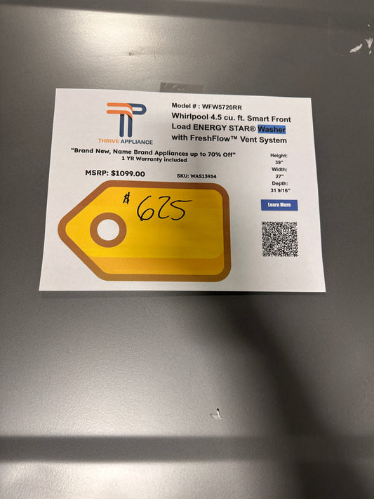 NEW! Whirlpool Smart Front Load Washer with FreshFlow Vent System MODEL: WFW5720RR WAS13934