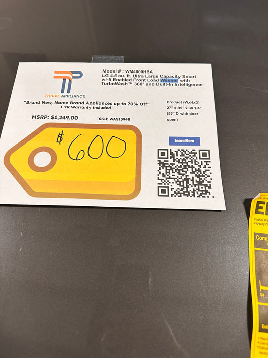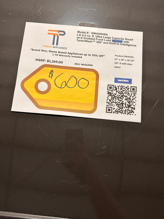 GREAT NEW LG FRONT LOAD WASHER MODEL: WM4000HBA WAS13998