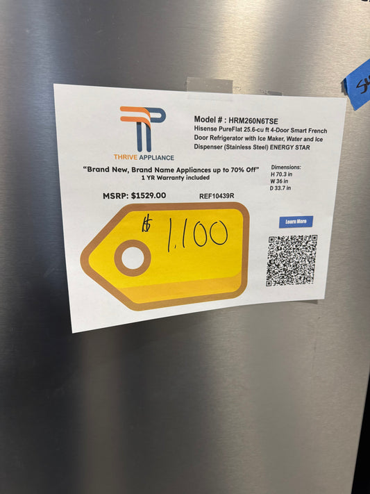 Hisense PureFlat Standard-Depth 25.6-cu ft 4 -Door 36-in Wide Smart Compatible French Door Refrigerator with Ice Maker with Water and Ice Dispenser ( Stainless steel ) ENERGY STAR Certified