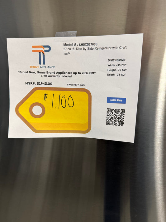 LG 27 cu. ft. Side by Side Smart Refrigerator w/ Craft Ice, External Ice and Water Dispenser in PrintProof Stainless Steel
