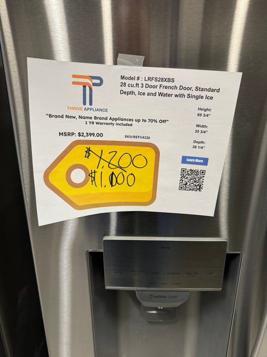 LG 28 cu. ft. 3 Door French Door Refrigerator with Ice and Water with Single Ice in Stainless Standard Depth