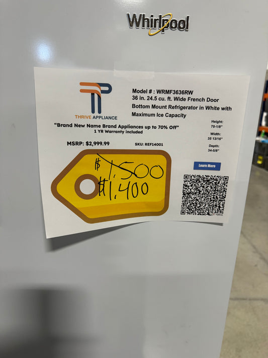 Whirlpool 36 in. 24.5 cu. ft. Wide French Door Bottom Mount Refrigerator in White with Maximum Ice Capacity