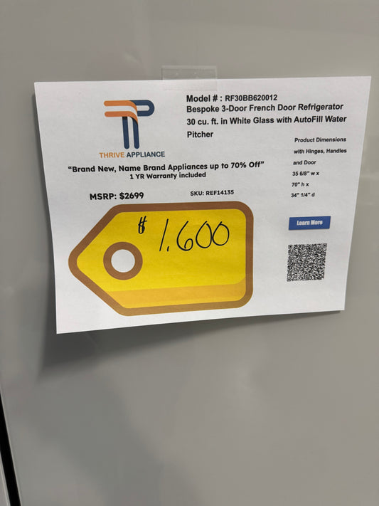 Samsung Bespoke 30 cu. ft. Standard Depth 3-Door French Door Smart Refrigerator in White Glass with Autofill Water Pitcher