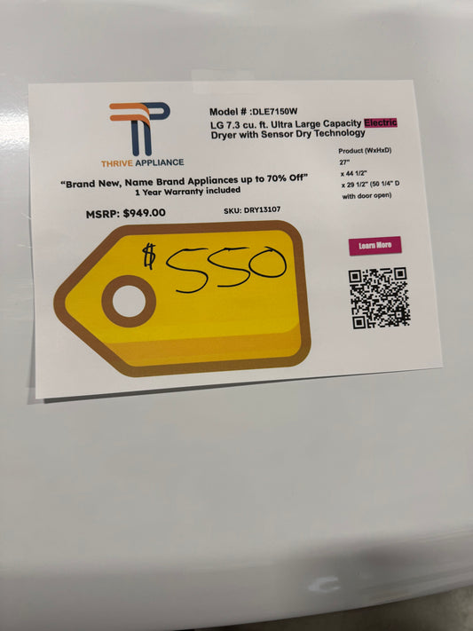 LG 7.3 Cu. Ft. Vented Electric Dryer in White with Sensor Dry Technology