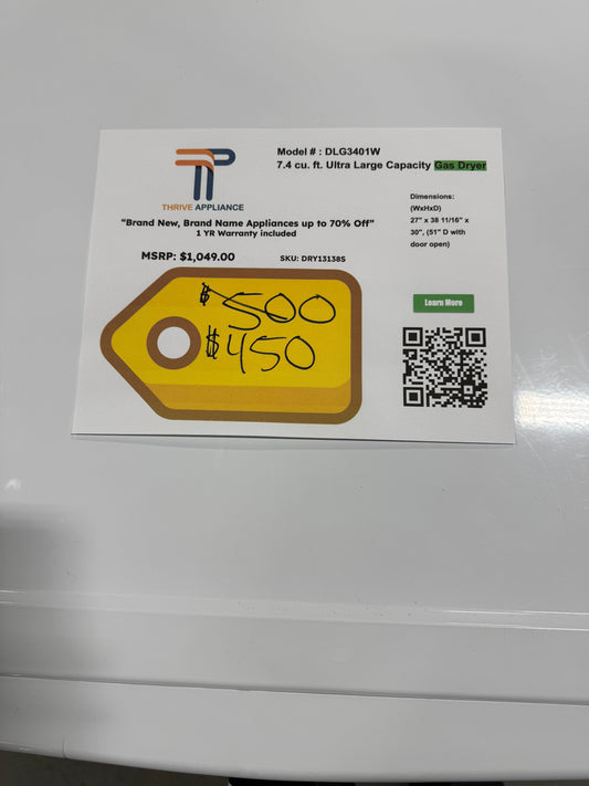 LG 7.4 Cu. Ft. Vented Stackable Gas Dryer in White with Sensor Dry